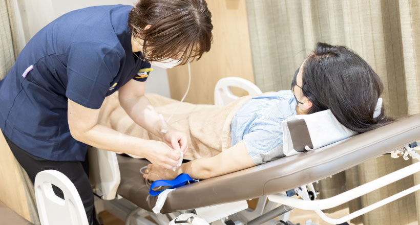 当院の胃カメラは、ほとんど眠ったような状態で受けられるように『鎮静剤』を使用します。眠った状態で検査ができ、喉の麻酔も不要ですので、身体への負担が少ないのが最大の特徴です。